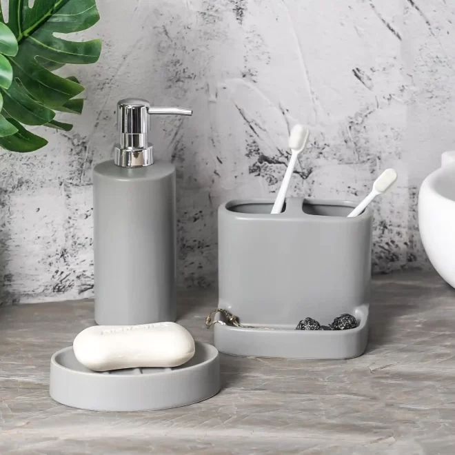 Juego de baño de suministro de fábrica, accesorios de baño de cerámica gris a granel