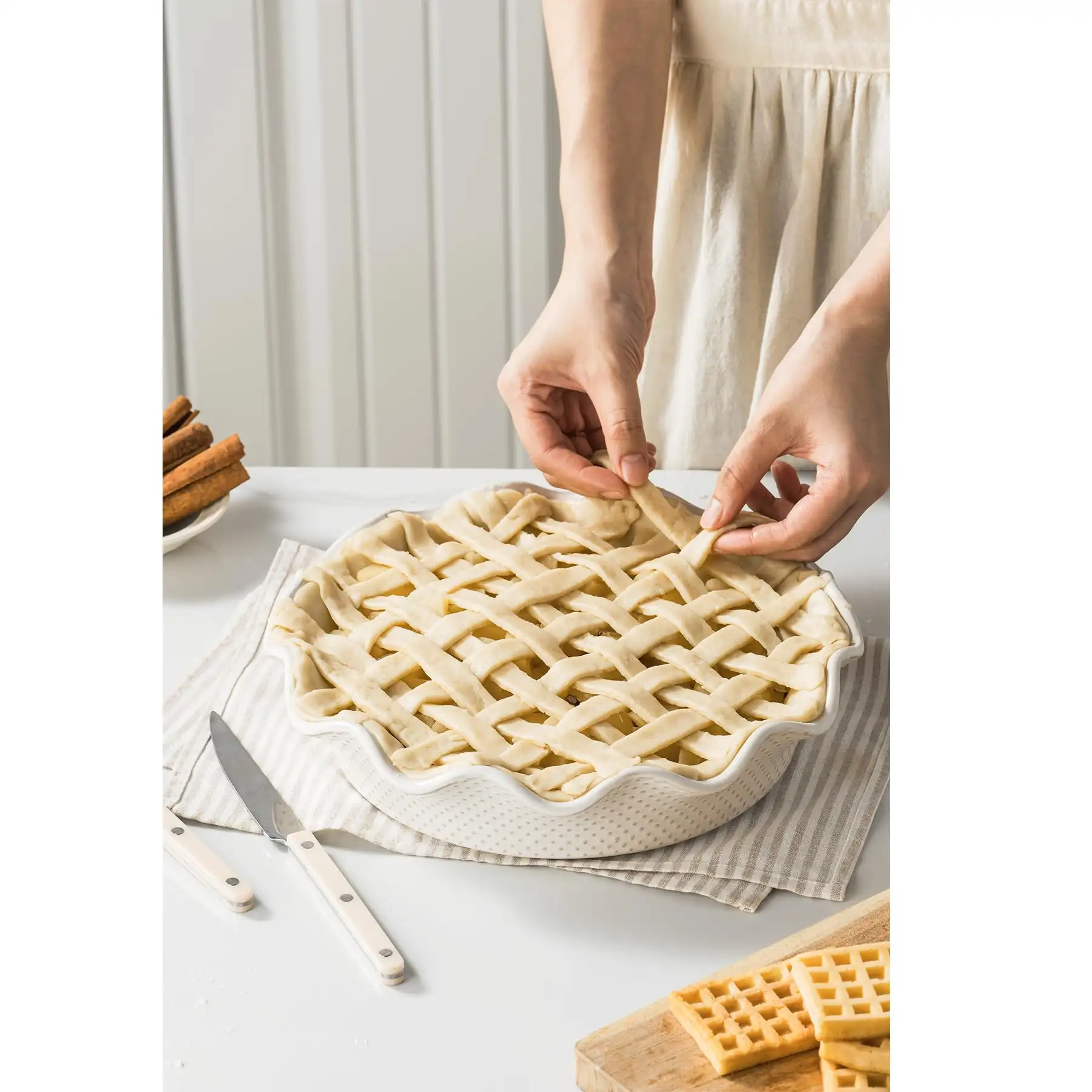 Wholesale Round Baking Dish with Wavy Edge, Custom Ceramic Pie Pan