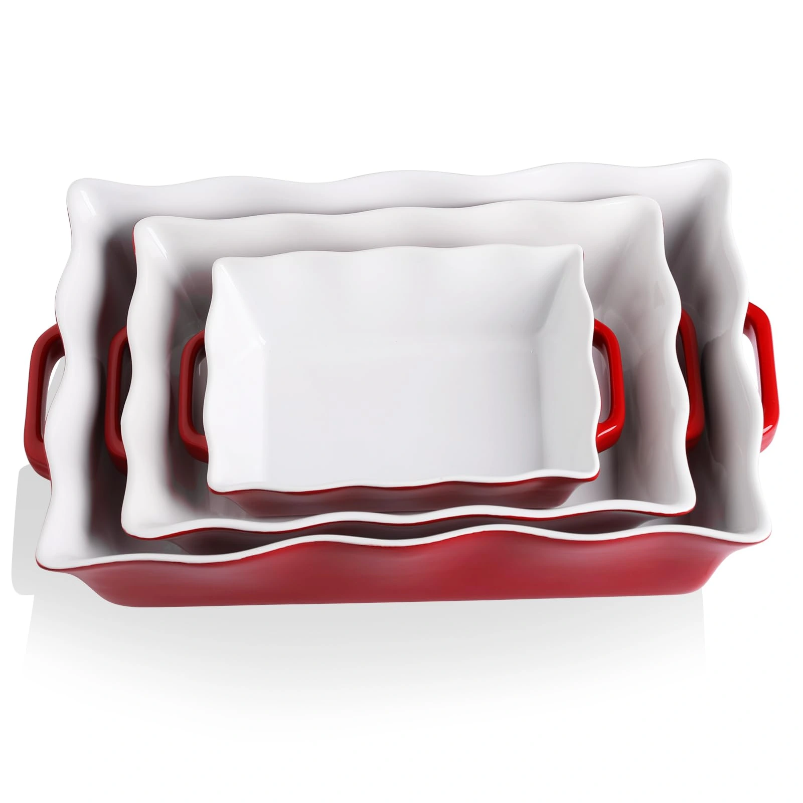 Custom Red Ceramic Baking Pan Set In Bulk with Wavy Edges