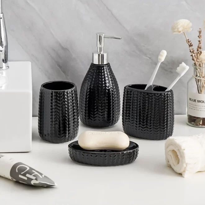 Welcome to purchase our custom bathroom set accessories. These black ceramic bathroom sets, with their exquisite appearance, practical functions, and high-quality materials, have become outstanding bathroom products. They not only meet users’ daily washing and storage needs, but also add elegance and fashion to the bathroom, making them an ideal choice for those who pursue a quality of life.
