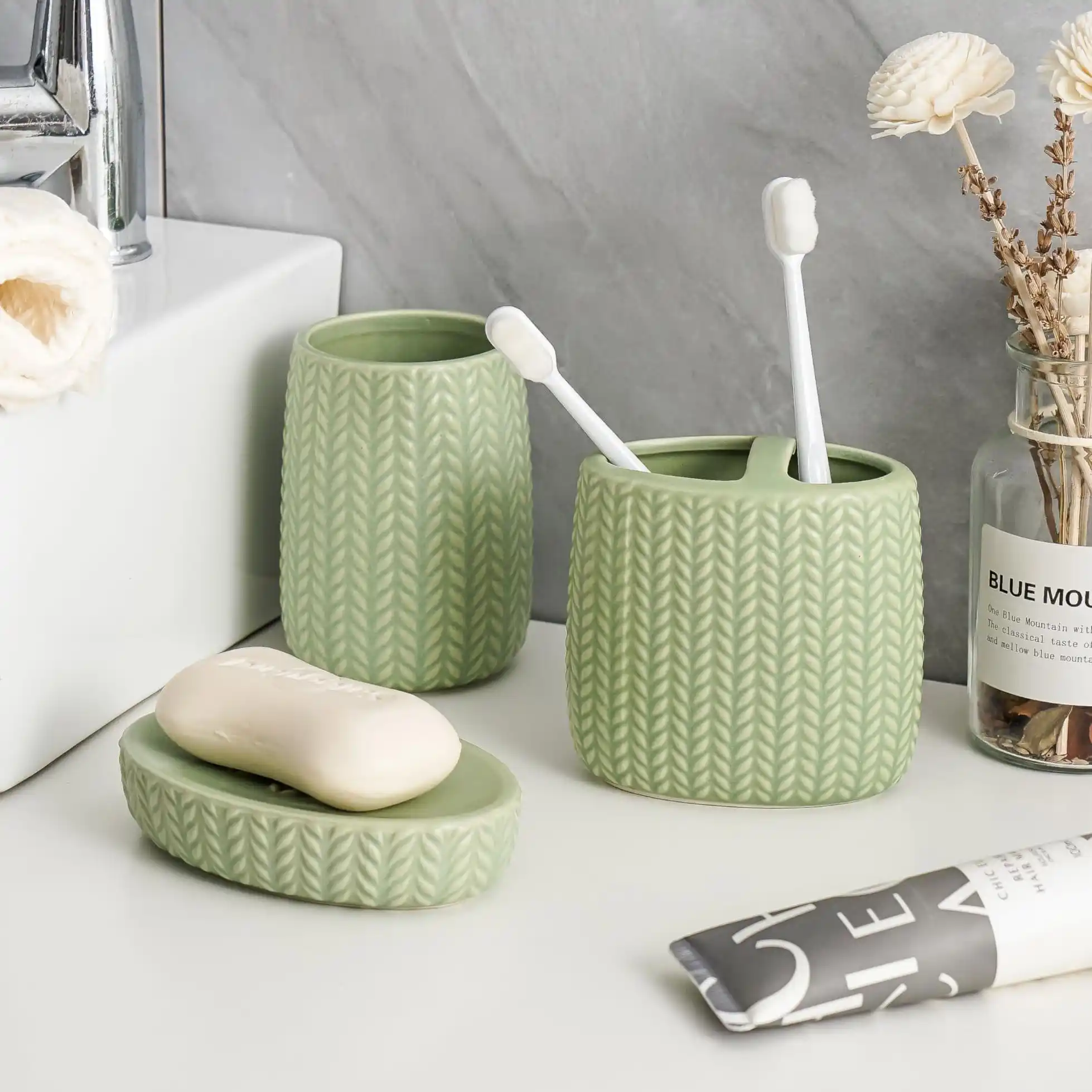 Green Bathroom Set Wholesale, Custom Ceramic Bath Accessory