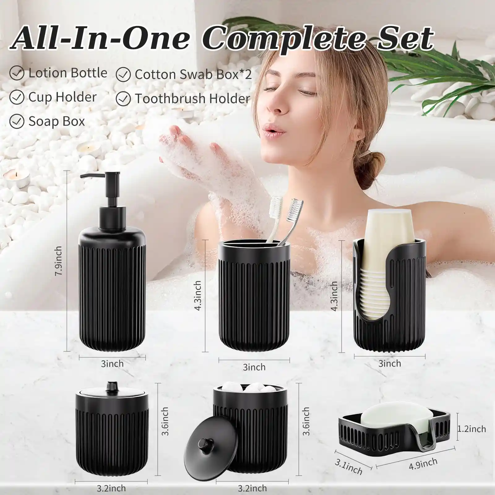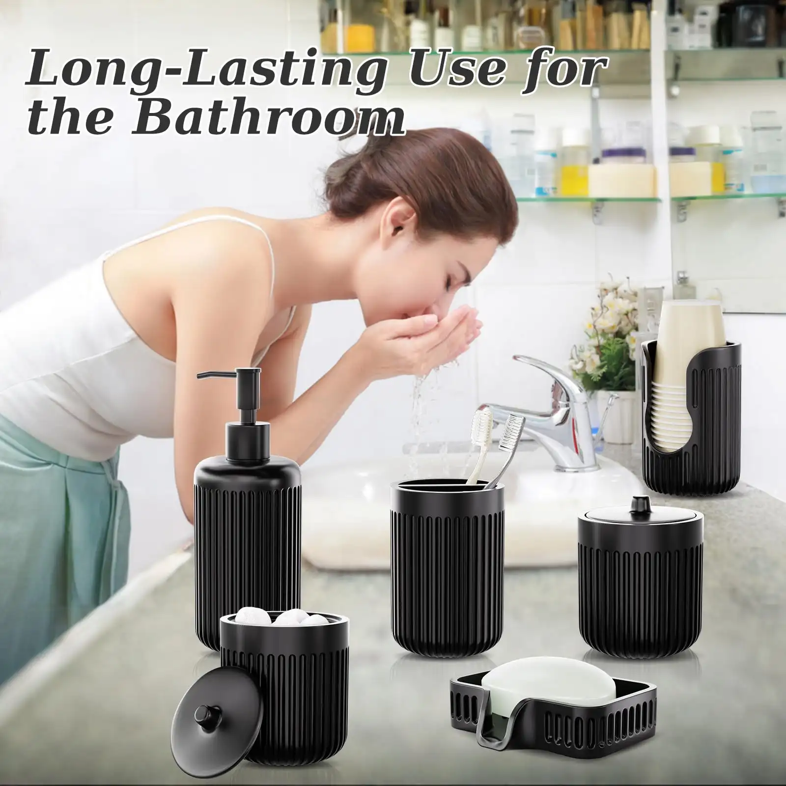 - Grande praticité : This matte black bathroom set supply a variety of practical bathroom essentials: soap dispensers, toothbrush holders, storage jars, paper cup holders, soap dishes, achieving “one-stop” clean storage and bidding farewell to cluttered countertops.