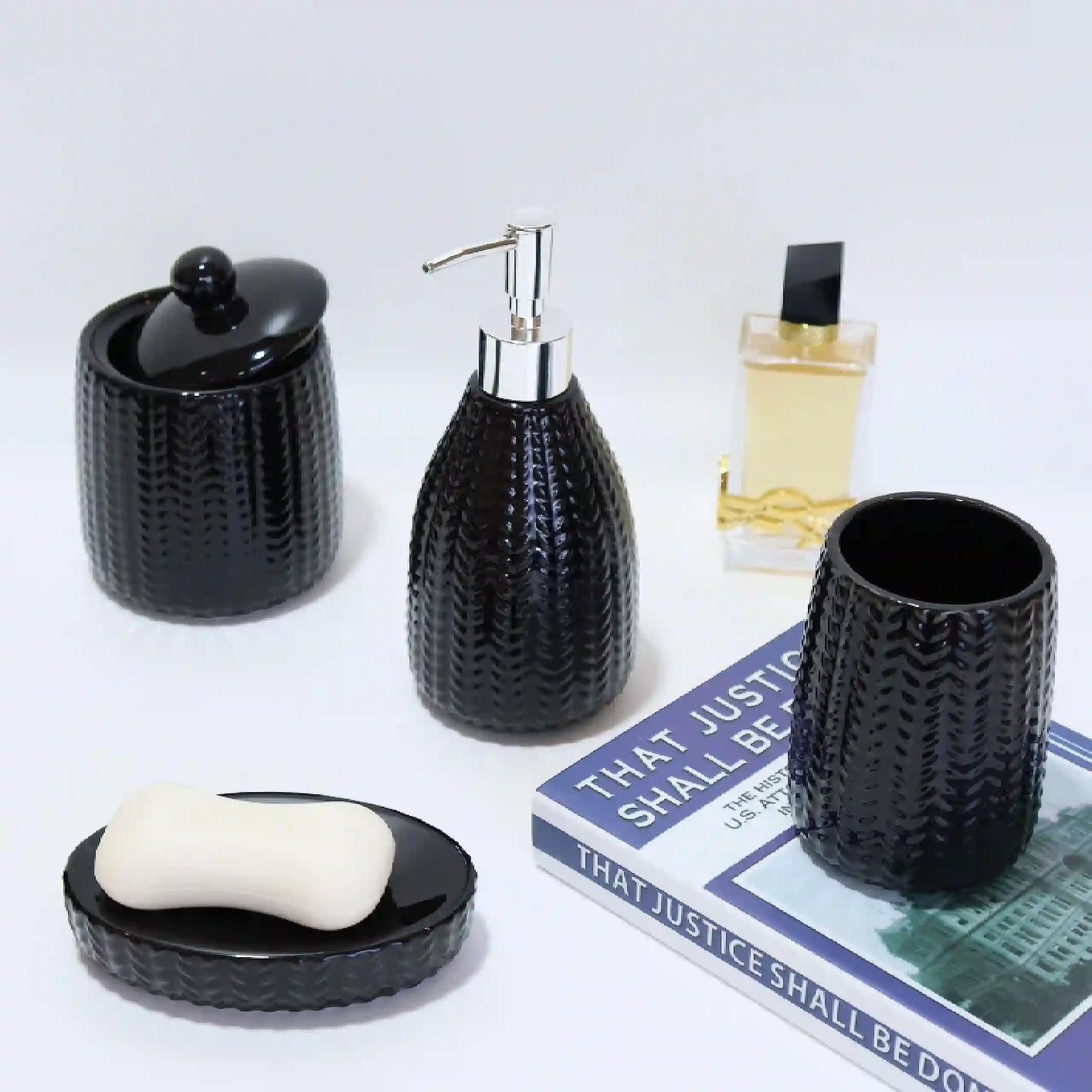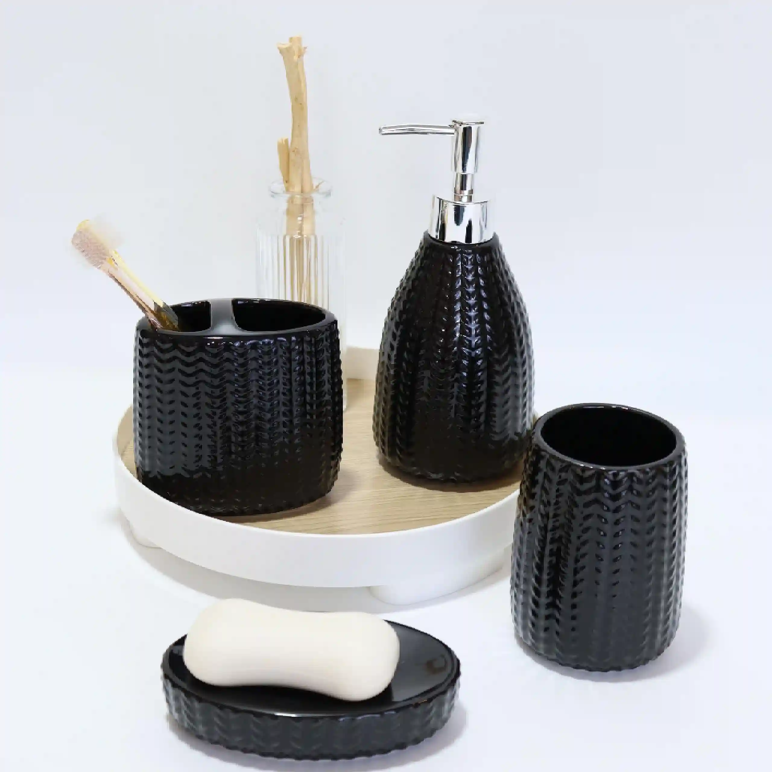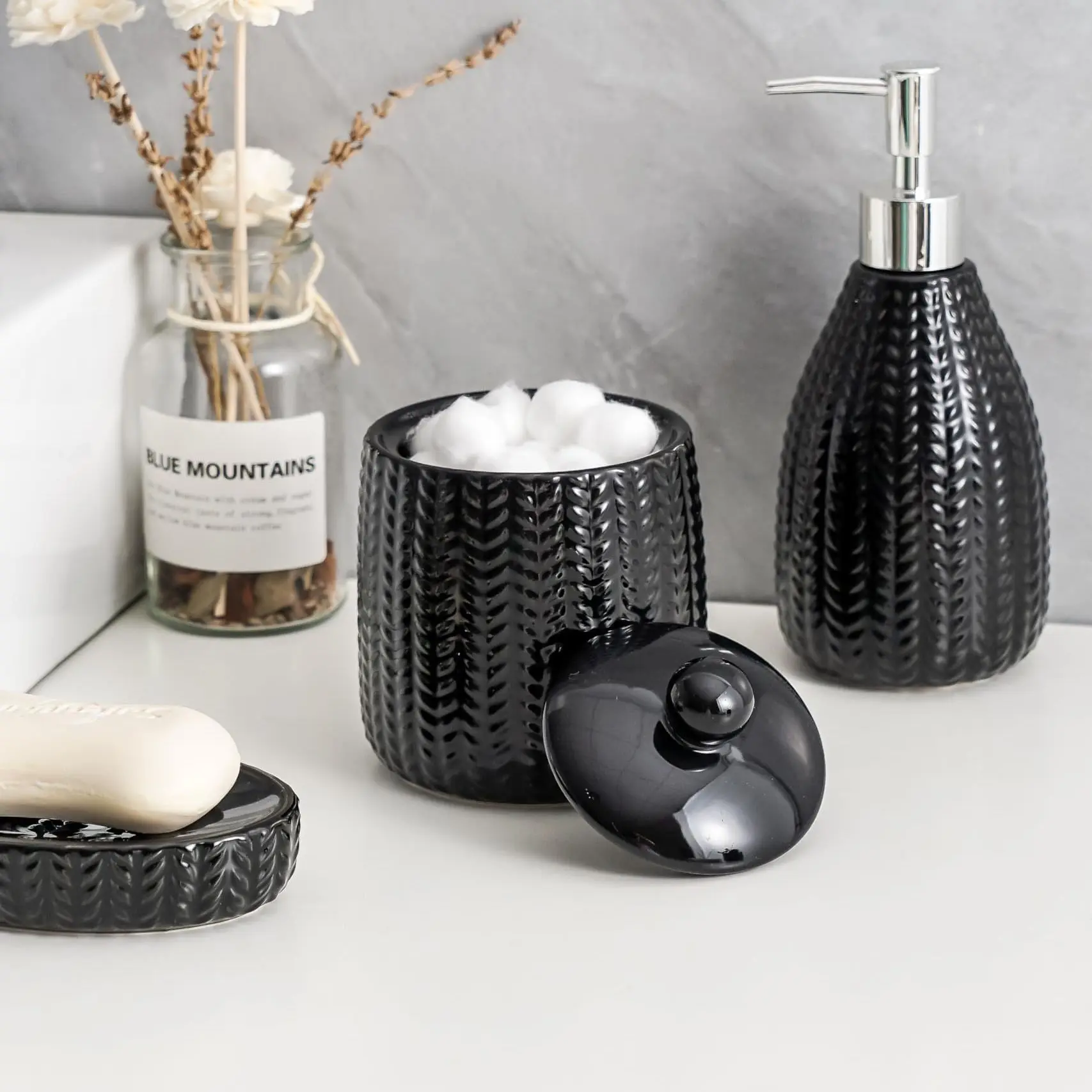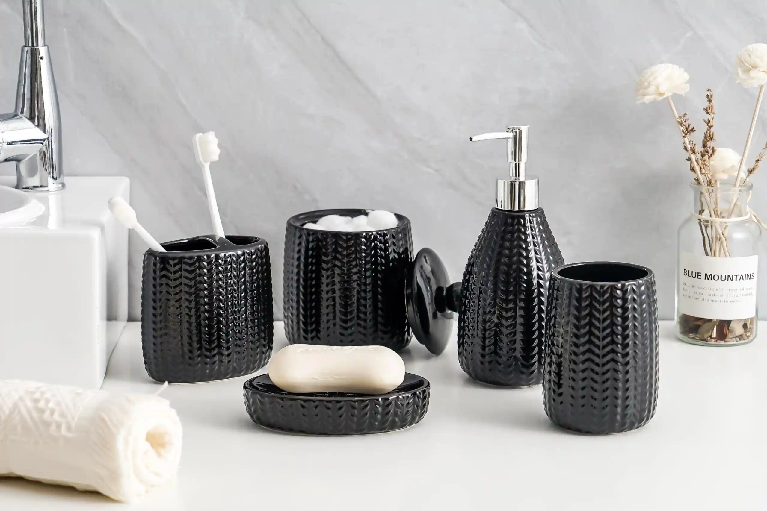 - Exquisite Design: These black custom bathroom set accessories have delicate textures on the surface, similar to woven patterns that increase the delicacy and three-dimensional feel of the product, avoiding the monotony brought by pure black, and providing a unique tactile experience when touched.