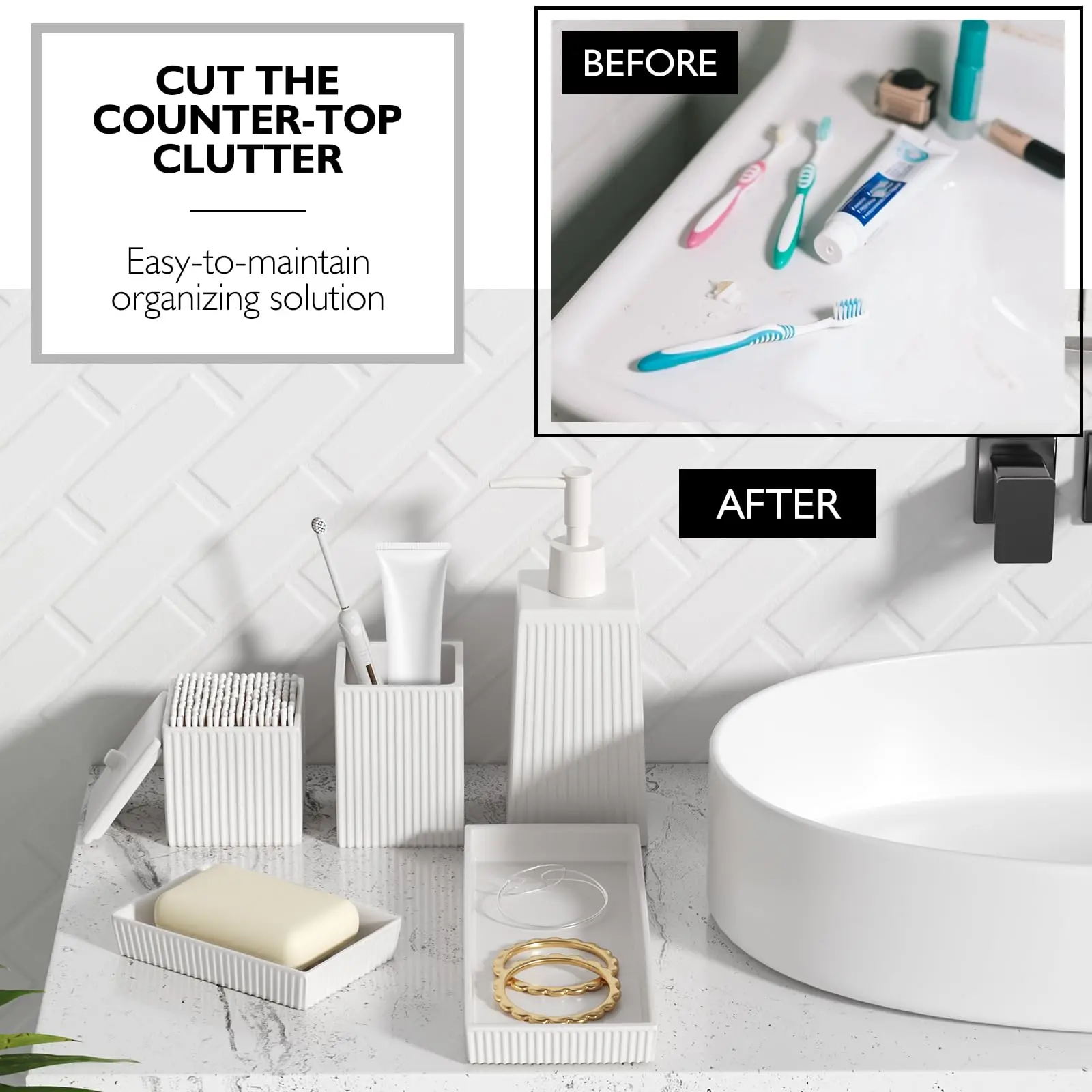 - Fully Functional: Our hotel bathroom accessories set wholesale cover a variety of commonly used bathroom accessories, such as soap dispensers for easy access to hand sanitizer or shower gel; The storage jar with lid can neatly store cotton balls, dental floss, etc; The tray can be used to hold other accessories or small items such as jewelry.