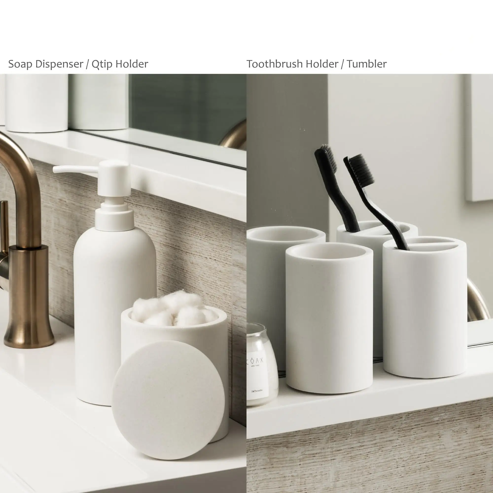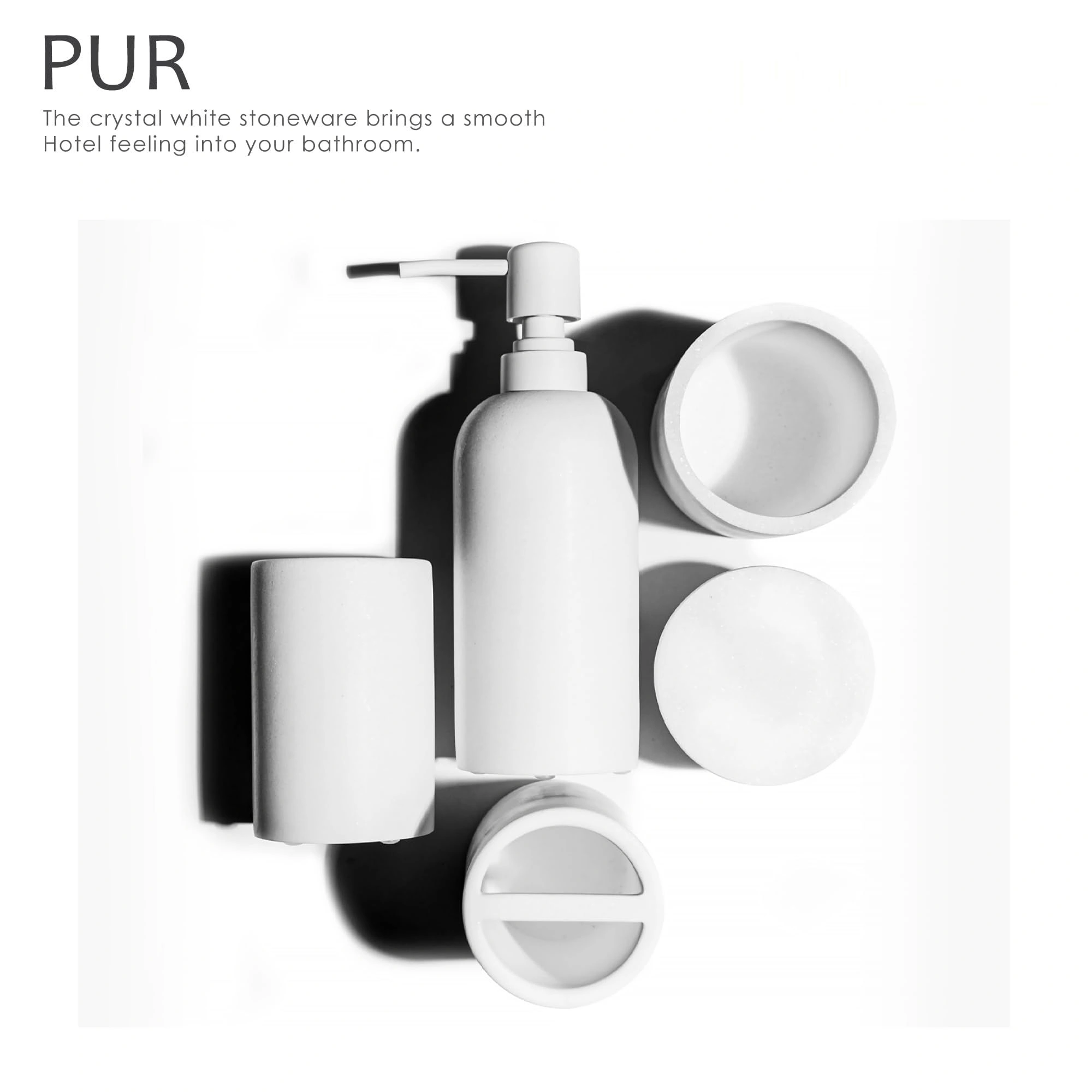 - ミニマルデザイン: The white ceramic bathroom set wholesale features a matte pure white design, paired with simple cylindrical shapes, combining modern minimalism with wabi-sabi style, and can adapt to various bathroom decoration styles such as minimalism, cream style, Nordic style, etc
