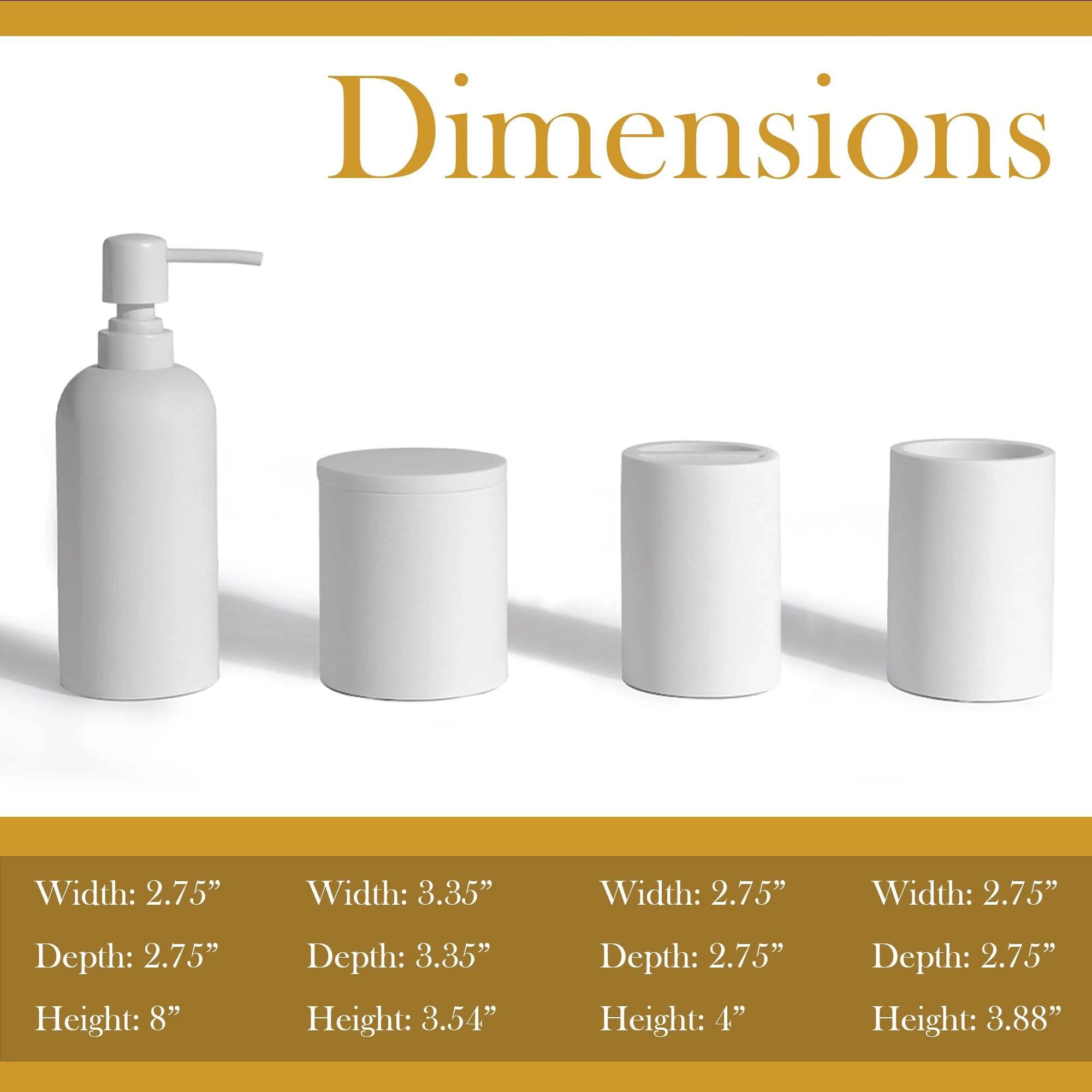 | 寸法 | 石鹸ボトル: 7*7*20.3cm jar: 8.5*8.5*9cm cup: 7*7*9.9cm toothbrush holder: 7*7*10.2cm |