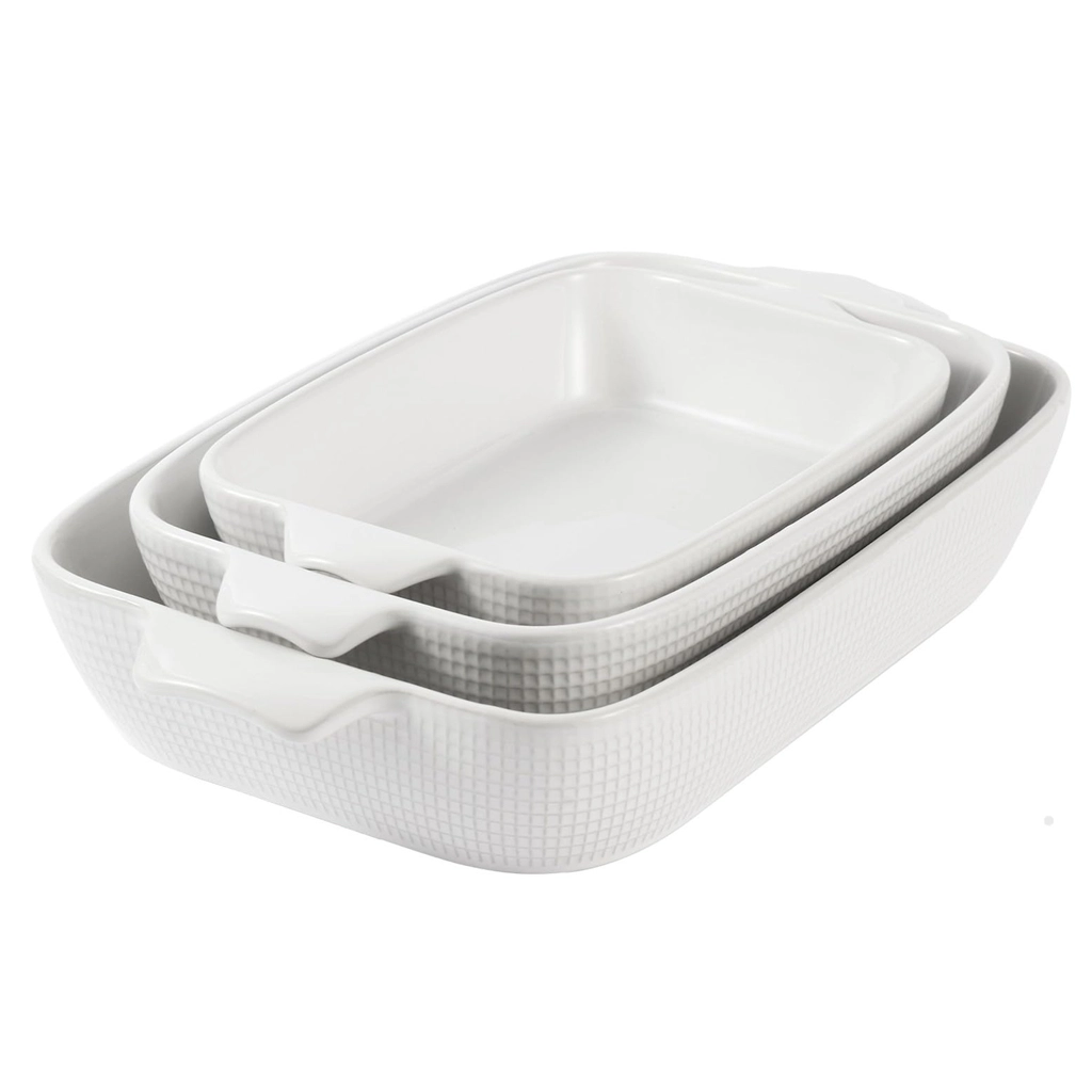 White Wholesale Baking Dish Sets with Grid Texture, Custom Ceramic Bakeware