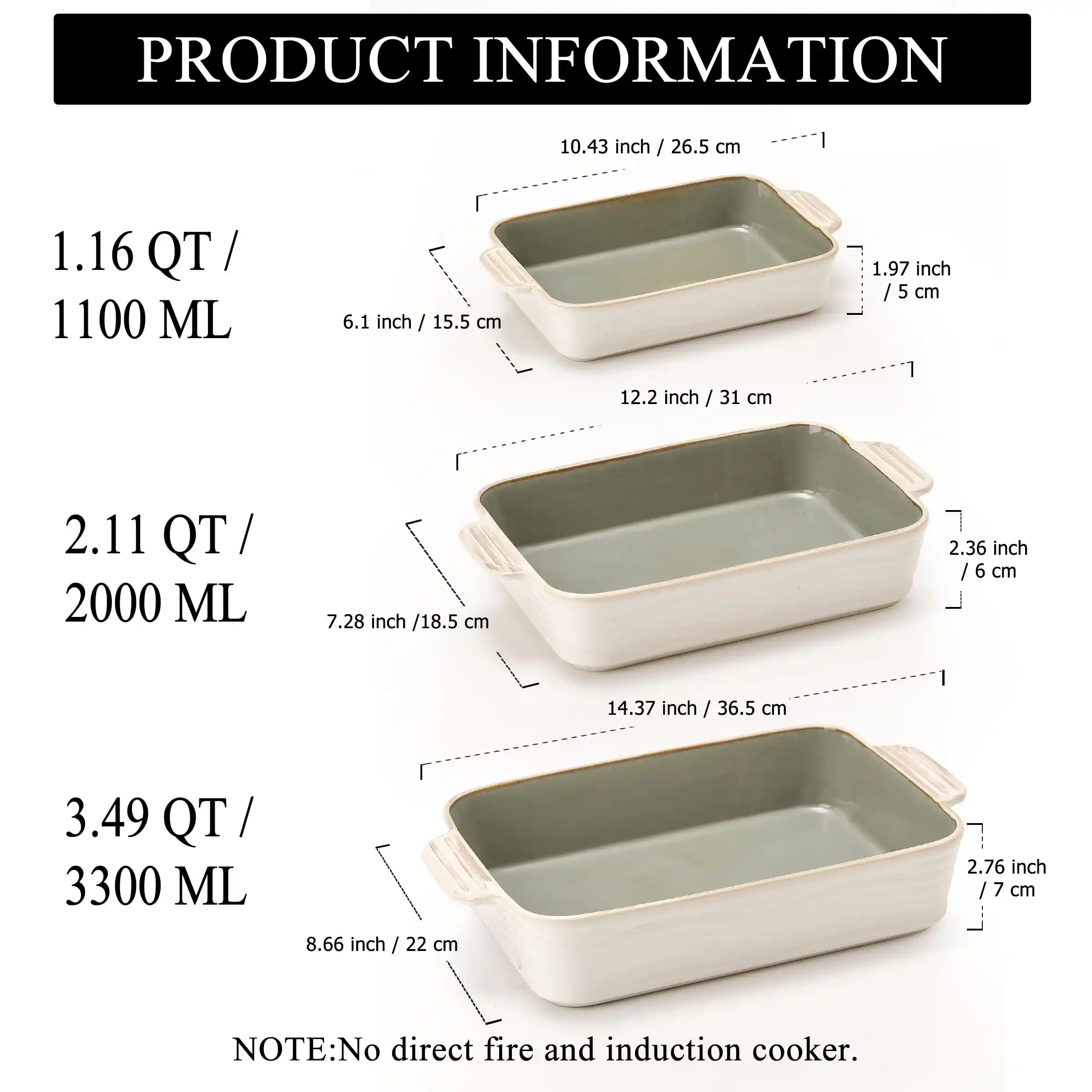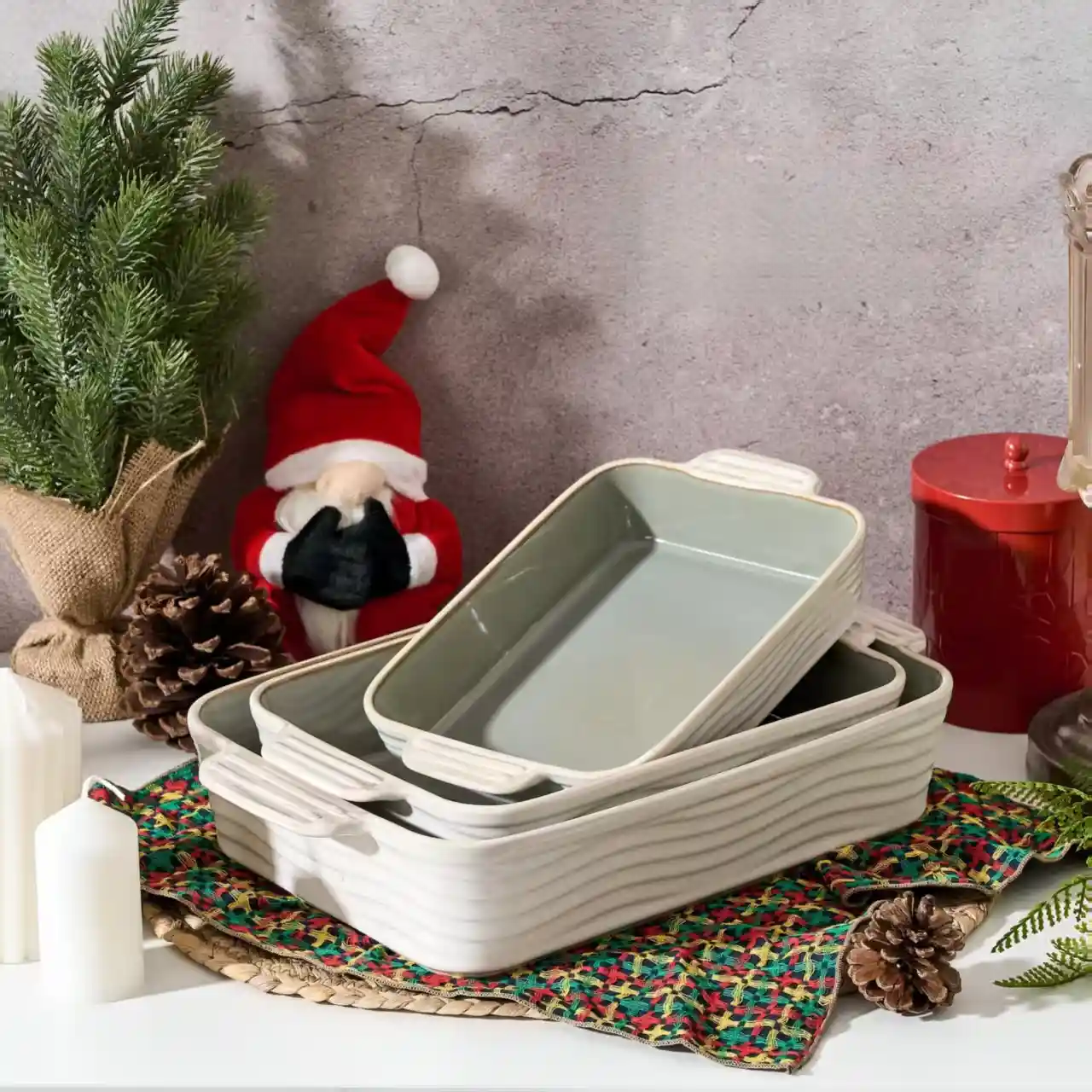 3-Piece Bulk Ceramic Baking Dish Set, Custom Baking Pans
