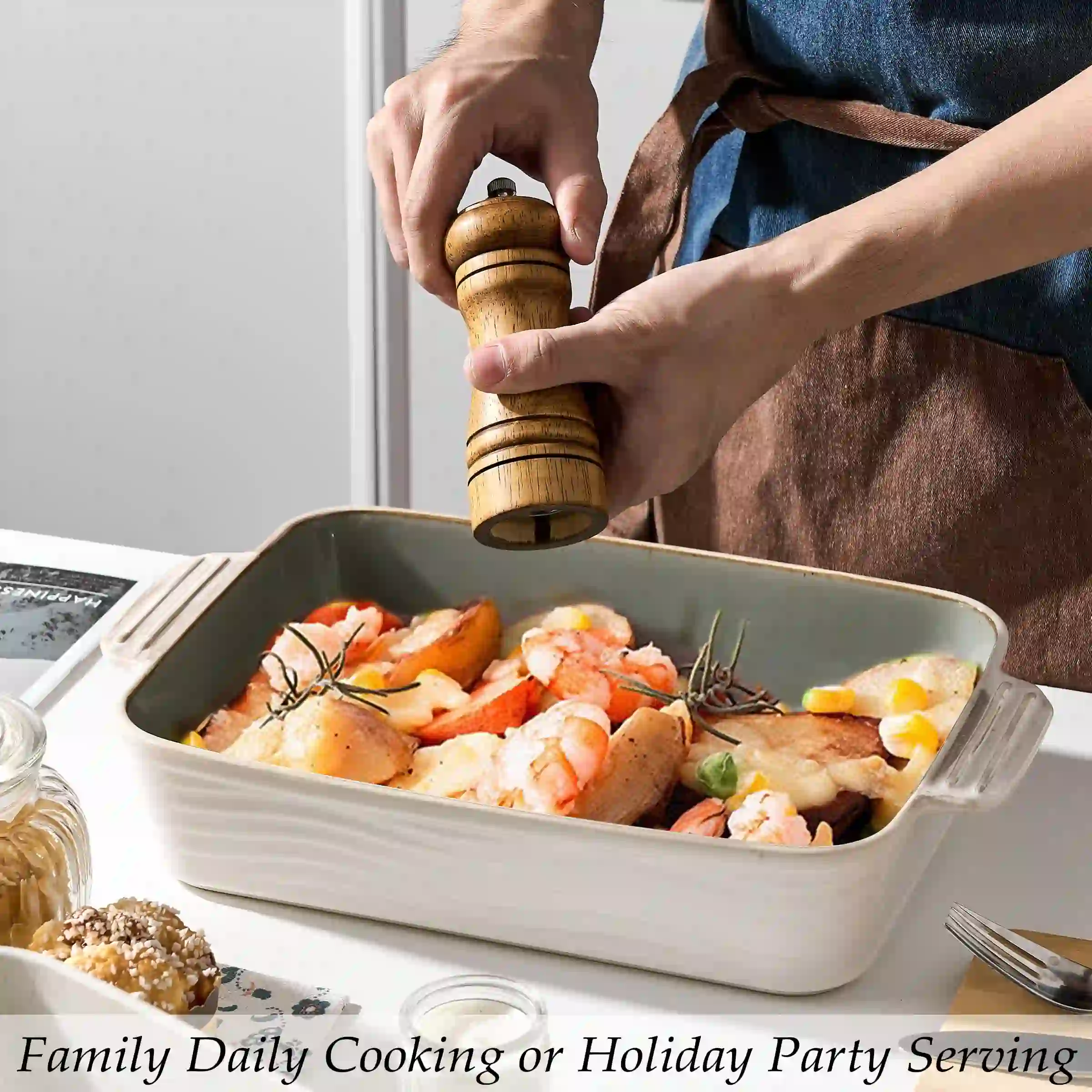 - Two-Tone Design: This bulk ceramic baking dish set uses a combination of off white outer glaze and green inner glaze to create a soft and layered visual effect, which is both fresh and elegant, and can blend well into various kitchen styles.