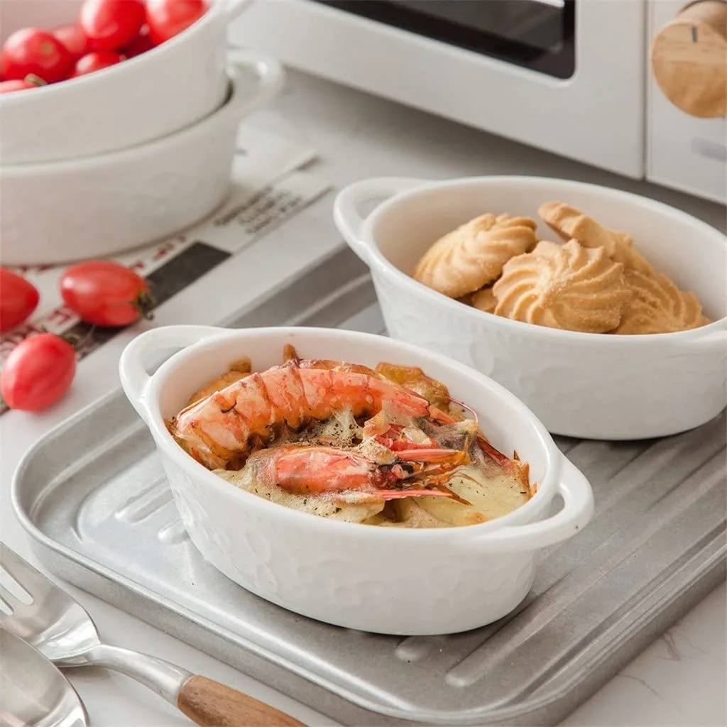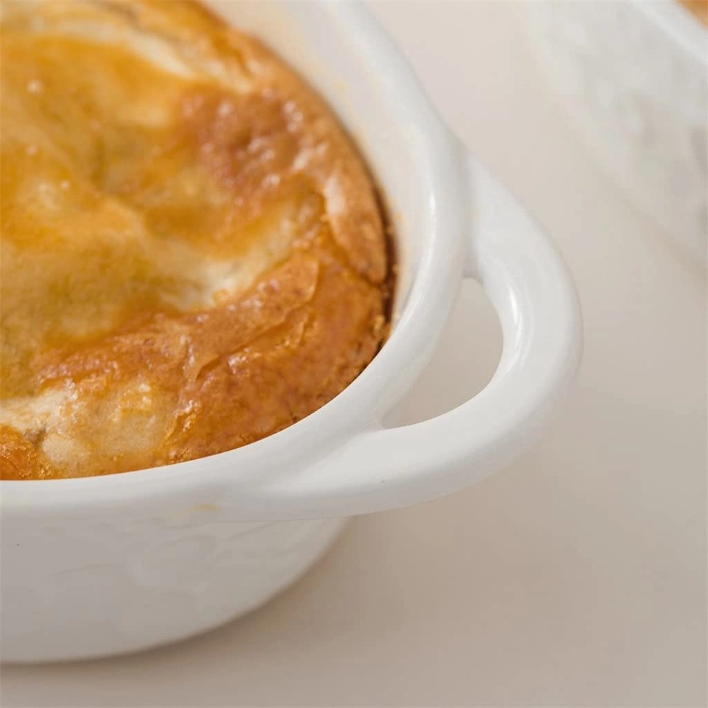 - Elegant Design: This oval casserole dish wholesale is designed with delicate, shallow relief patterns on its surface. The simple and clean white color, combined with subtle visual layers, not only avoids the visual monotony of solid colors but also enhances the artistic and ornamental value of the products.
