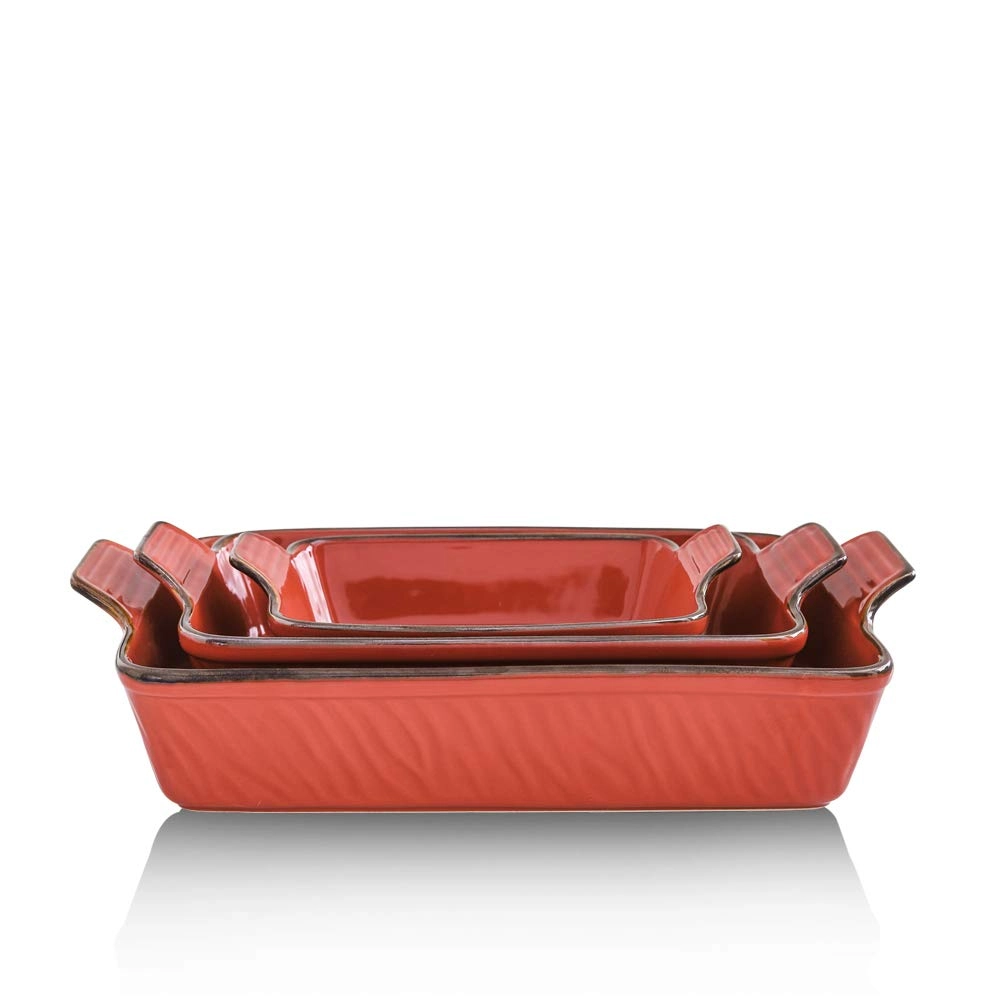 3-Piece Red Custom Bakeware Set, Ceramic Baking Dishes Wholesale
