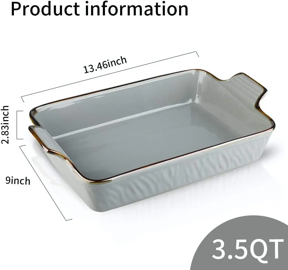 - Elegant Color Scheme: These wholesale baking dishes are designed with a light gray color scheme and decorated with gold lines on the edges, which are simple yet elegant, and can adapt well to various dining table styles and kitchen decoration styles.